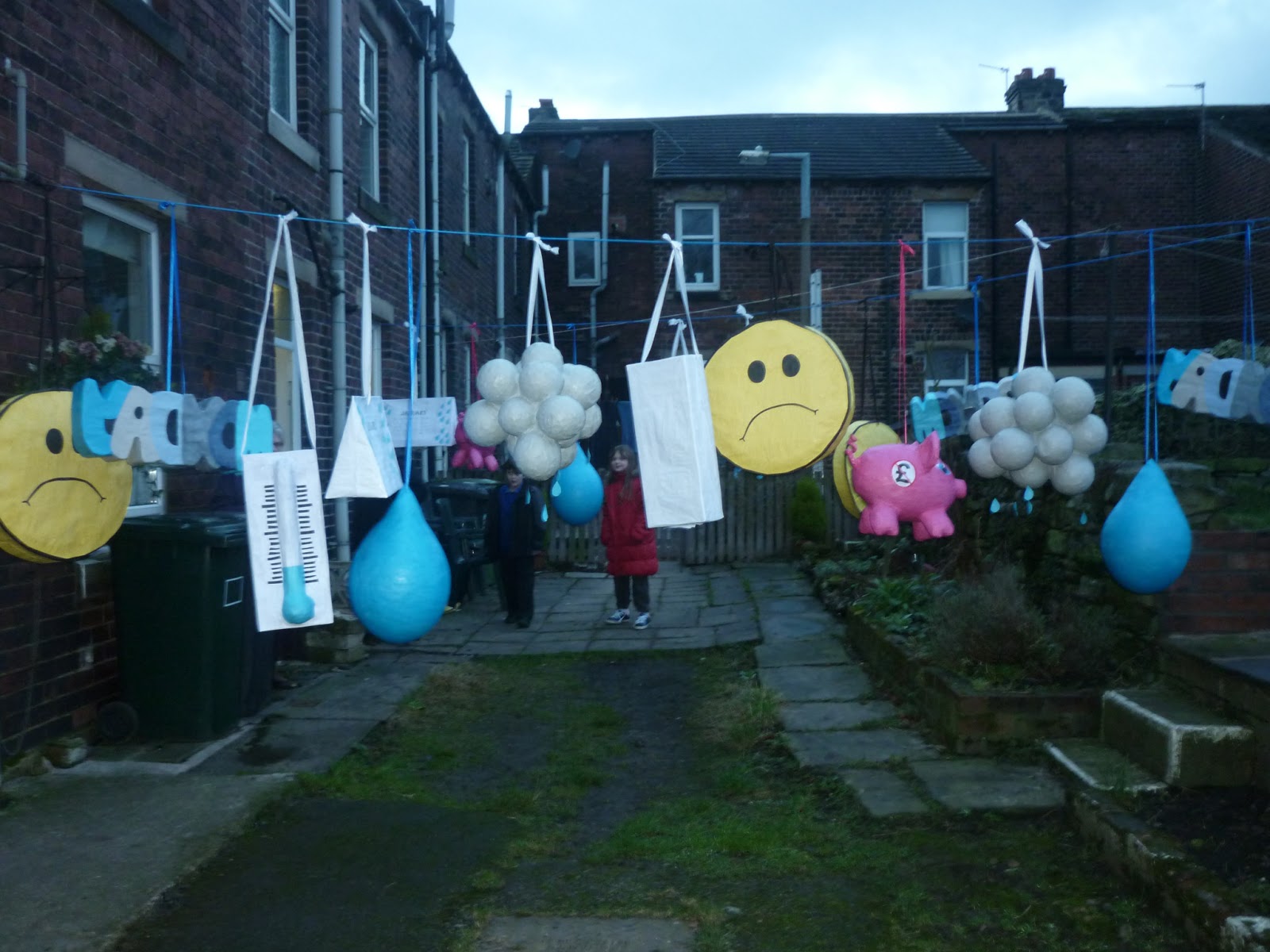 This years snowman piñata. He's not quite finished yet but he'll probably have to do as is till next year as the orders are racking up and we have a party to organise for our youngest child. We're also hoping to get some more pics with a blue sky in the background before the snow melts! Here's a good preview anyway!